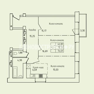 2-комн.Площадь: 76.69м2