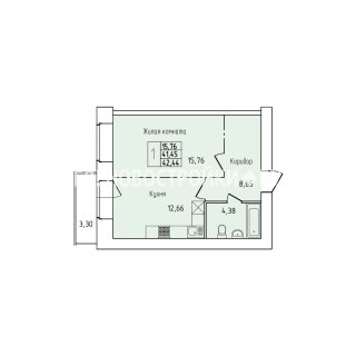 1-комн.Площадь: 42.44м2