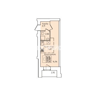 СтудияПлощадь: 27.45м2