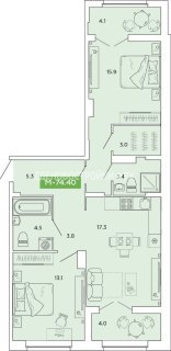 3-комн.Площадь: 74.4м2