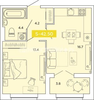 2-комн.Площадь: 42.5м2