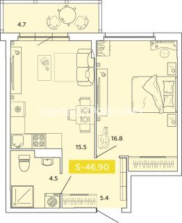 2-комн.Площадь: 46.9м2
