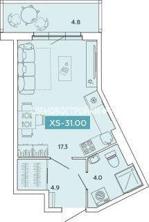 СтудияПлощадь: 31м2