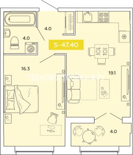 2-комн.Площадь: 47.4м2