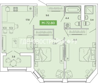3-комн.Площадь: 72.8м2