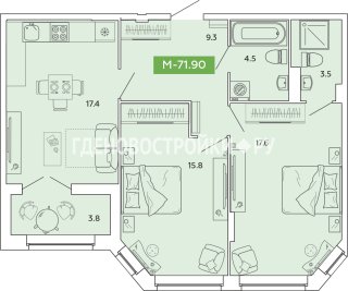 3-комн.Площадь: 71.9м2