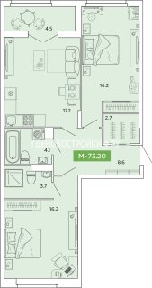 3-комн.Площадь: 73.2м2