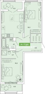 3-комн.Площадь: 77.8м2