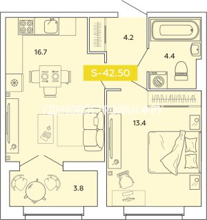 2-комн.Площадь: 42.5м2