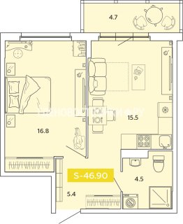 2-комн.Площадь: 46.9м2