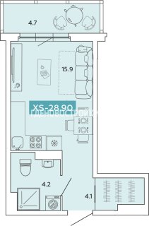 СтудияПлощадь: 28.9м2