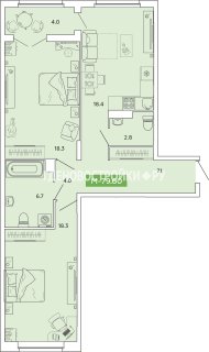 3-комн.Площадь: 79.6м2