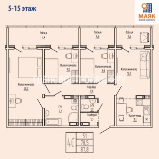 4-комн.Площадь: 87.7м2
